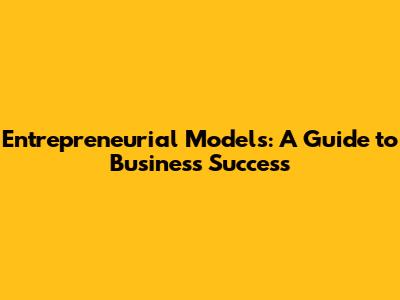 Entrepreneurial Models: A Guide To Business Success
