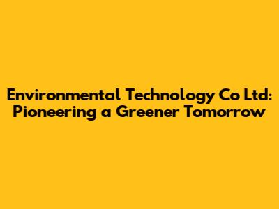 Hey guys! Ever wondered about the future of our planet and how we can make it a better place? Well, Environmental Technology Co Ltd is one of the companies leading the charge, and today, we're diving deep into what makes them tick. We'll explore their mission, the innovative solutions they're developing, and why they're so crucial in today's world. So, buckle up, because we're about to embark on a journey into the world of sustainable technology and how it can save the world.