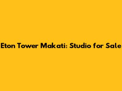 Eton Tower Makati: Studio For Sale