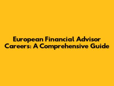 European Financial Advisor Careers: A Comprehensive Guide