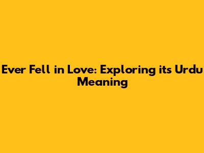 Ever Fell In Love: Exploring Its Urdu Meaning