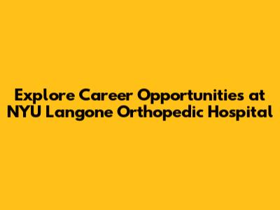 Job Opportunities at NYU Langone Orthopedic Hospital
