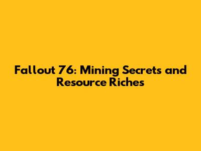 Fallout 76: Mining Secrets And Resource Riches