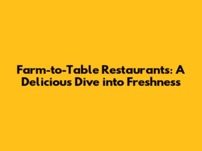 Farm-to-Table Restaurants: Freshness From Field To Fork