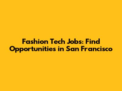 Fashion Tech Jobs: Find Opportunities In San Francisco