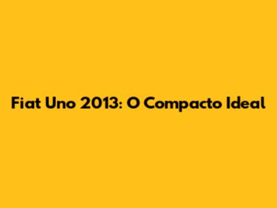 Fiat Uno 2013: O Compacto Ideal