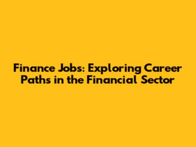 Finance Jobs: Exploring Career Paths In The Financial Sector