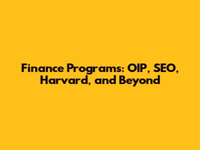 Finance Programs: OIP, SEO, Harvard, And Beyond