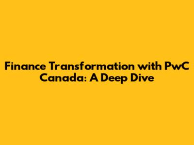 Finance Transformation With PwC Canada: A Deep Dive