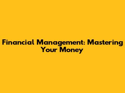 Financial Management: Mastering Your Money
