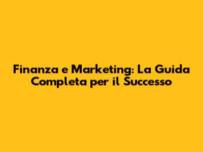 Finanza E Marketing: La Guida Completa Per Il Successo