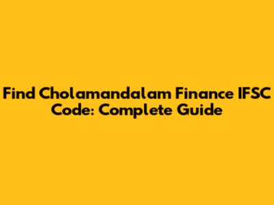 Find Cholamandalam Finance IFSC Code: Complete Guide