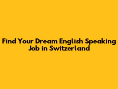Find English Speaking Jobs In Switzerland