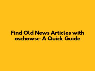 Find Old News Articles With Oschowsc: A Quick Guide