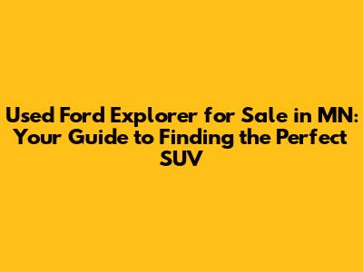 Finding a used Ford Explorer for sale in MN can be an exciting journey, and with the right knowledge and preparation, you'll be driving off into the Minnesota sunset in your new SUV. Remember to research, inspect thoroughly, and be ready to negotiate. By following this guide, you'll be well-equipped to find a reliable and affordable used Ford Explorer that meets your needs and budget. Happy exploring!