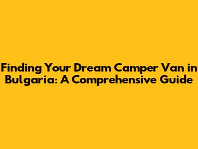 Finding Your Dream Camper Van In Bulgaria