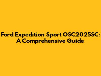 Ford Expedition Sport OSC2025SC: Everything You Need To Know