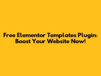 Free Elementor Templates Plugin: Boost Your Website Now!