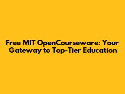 Free MIT OpenCourseware: Your Gateway To Top-Tier Education