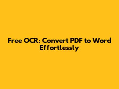 Free OCR: Convert PDF To Word Effortlessly