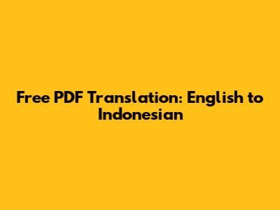 Free PDF Translation: English To Indonesian