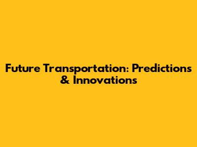 Future Transportation: Predictions & Innovations