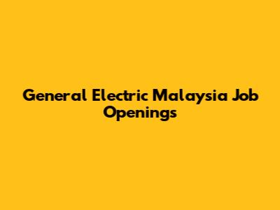 General Electric Malaysia Job Openings