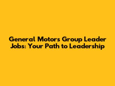 General Motors Group Leader Jobs: Your Path To Leadership