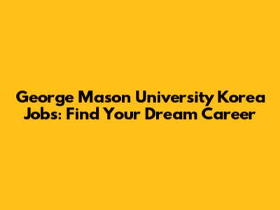 George Mason University Korea Jobs: Find Your Dream Career