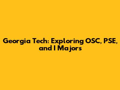Georgia Tech: Exploring OSC, PSE, And I Majors