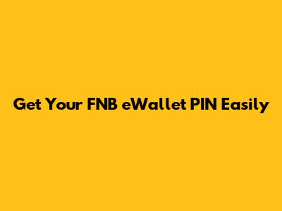 Get Your FNB EWallet PIN Easily