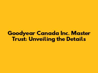 Hey everyone, let's dive into something that might sound a bit dry at first – the Goodyear Canada Inc. Master Trust. But trust me, understanding this is actually pretty interesting, especially if you're curious about how big companies handle their finances and employee benefits. This isn't just about tires; it's about the financial backbone supporting Goodyear's operations and, more importantly, the well-being of its Canadian employees. We're going to break down what the Goodyear Canada Inc. Master Trust is, why it exists, and what it means for everyone involved. So, grab a coffee (or your beverage of choice), and let's get started!