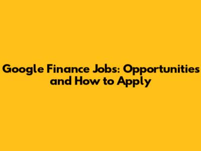 Google Finance Jobs: Opportunities And How To Apply
