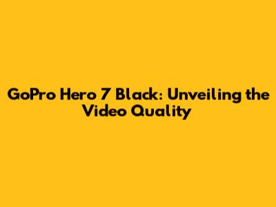 GoPro Hero 7 Black: Unveiling The Video Quality