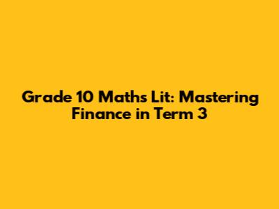 Grade 10 Maths Lit: Finance For Term 3