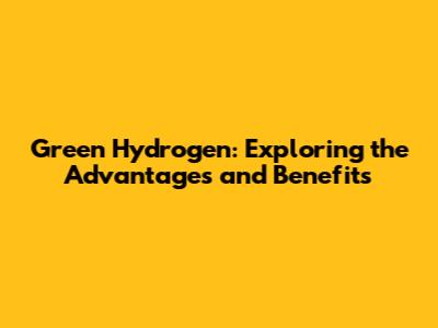 Green Hydrogen: Exploring The Advantages And Benefits