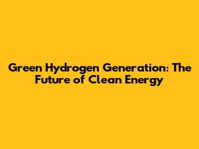 Green Hydrogen Generation: The Future Of Clean Energy