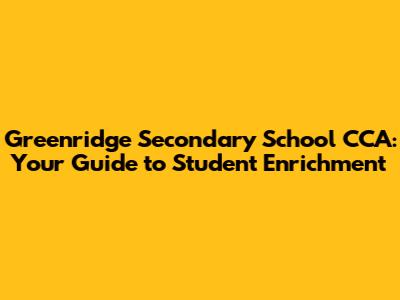 What are CCAs and Why are They Important at Greenridge Secondary School?