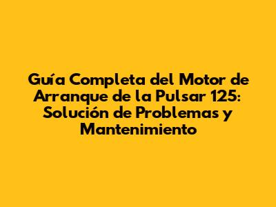 Guía Completa Del Motor De Arranque De La Pulsar 125: Solución De Problemas Y Mantenimiento