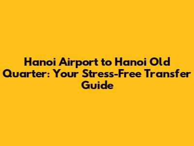 Hanoi Airport To Old Quarter: Easiest Transfer Guide