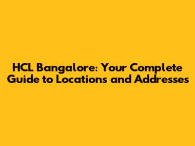 HCL Bangalore: Locations, Addresses, And More