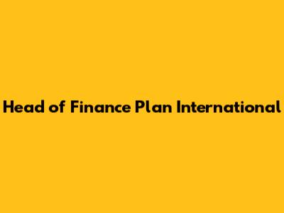 Head Of Finance Plan International: Role & Opportunities