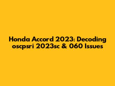 Honda Accord 2023: Oscpsri 2023sc & 060 Issues