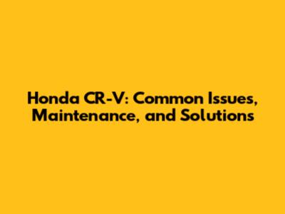 Honda CR-V: Common Issues, Maintenance, And Solutions