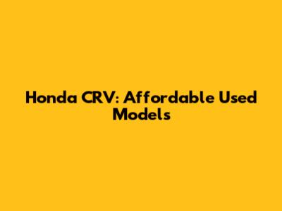 Honda CRV: Affordable Used Models