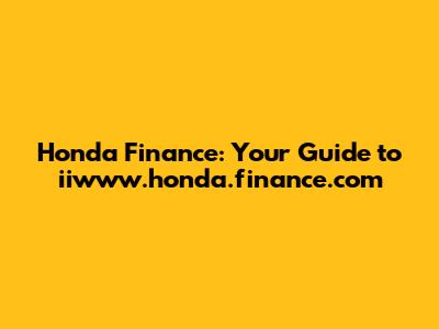 Honda Finance: Your Guide To Iiwww.honda.finance.com
