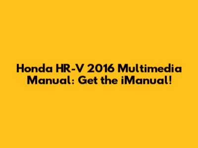 Hey there, Honda HR-V enthusiasts! Are you looking to get the most out of your 2016 HR-V's multimedia system? You've come to the right place! In this article, we'll dive deep into everything you need to know about the iManual and how it can enhance your driving experience. Let's get started!