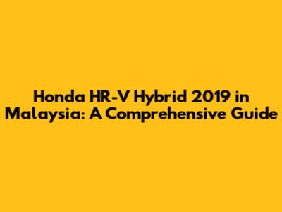 Honda HR-V Hybrid 2019 In Malaysia: A Comprehensive Guide