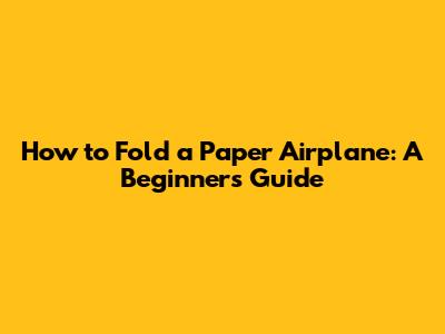 **How To Fold A Paper Airplane: A Beginner's Guide**