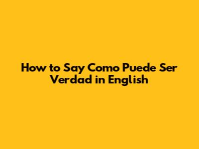 How To Say 'Como Puede Ser Verdad' In English